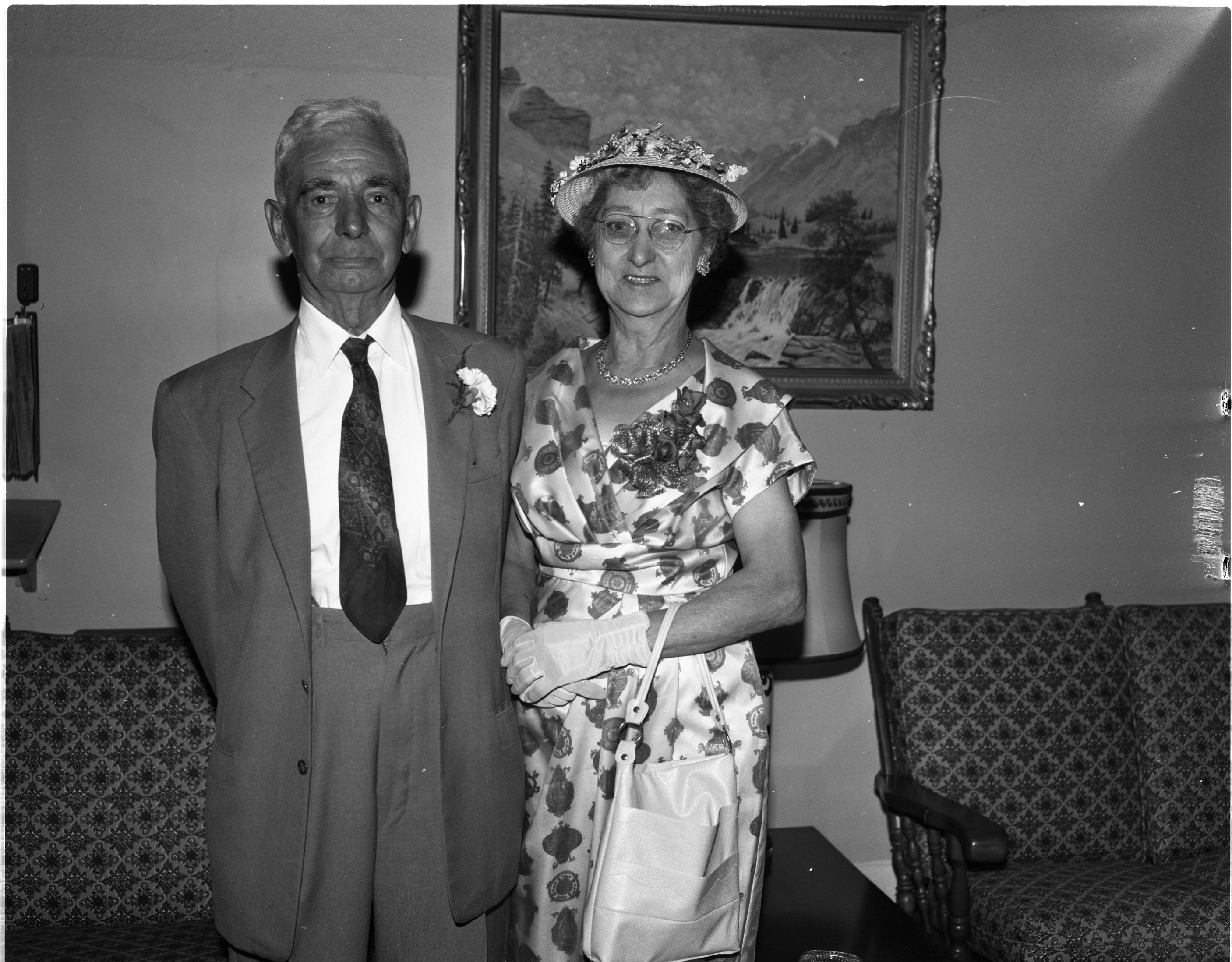 Mr. and Mrs. Zacharia Lefaive got married at Port McNicoll Wednesday – for the second time. Not that there was any doubt as to the legality of the first ceremony. lt was just a pleasant way to let old friends attend their 50th wedding anniversary. Actually the ceremony should have been held on Tuesday – they were married in Perkinsfield on August 9, 1910, but more members of the family could attend Wednesday, so that is the way it was. Born near Perkinsfield 76 years ago, Mr. Lefaive still has two brothers and two sisters both living, in the United States. He was raised on the farm but moved to Victoria Harbour with his family as a youngster and got most of his schooling there. ‘Zach’ also got his first job there – in one or the old lumber mills – at 25 cents per day for a 10-hour day. He lived in the Harbour for about 20 years he recalled. Then the family went back to the farm at Lefaive’s Corners where there were no fewer than seven different Lefaive families in the immediate area. There was also, about a mile and a half away, a young lady named Isobel Parent, who was destined to become Mrs. Zach Lefaive on that August 9th half a century ago. The Lefaives continued on the farm for another 20 years, finally moving to Port McNicoll some 30 years ago. They have been there ever since. For most or that time, until 11 years ago, Zach worked as a stevedore in the freight sheds. During their 50 years of wedded life the Lefaives raised a family of nine – five sons and four daughters. Sons are Urbain of Port, Norbert, Northern Quebec, Armos, Oshawa and Norbert, Toronto. The daughters are Bernadette, (Mrs. John Clarke) London, Beatrice, (Mrs. Dick Brady) Waubaushene, Stella, (Mrs. Henry Greer) and Clara (Mrs. Art Worth) both of Port McNicoll, and Dolores (Mrs. Art Ryan), Montreal.