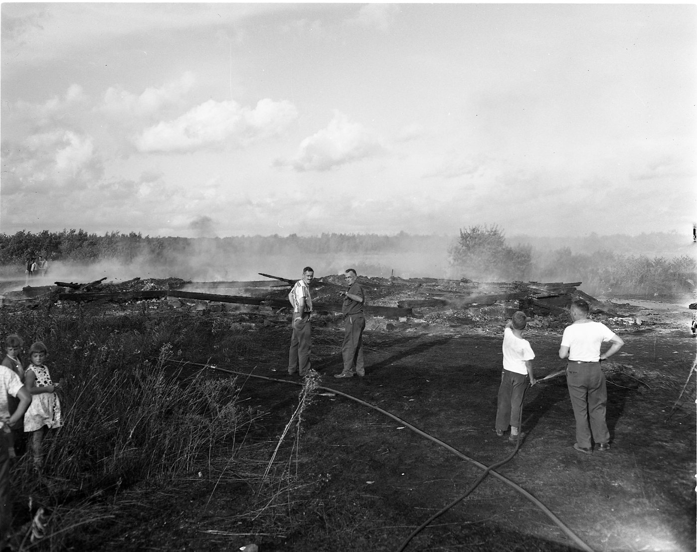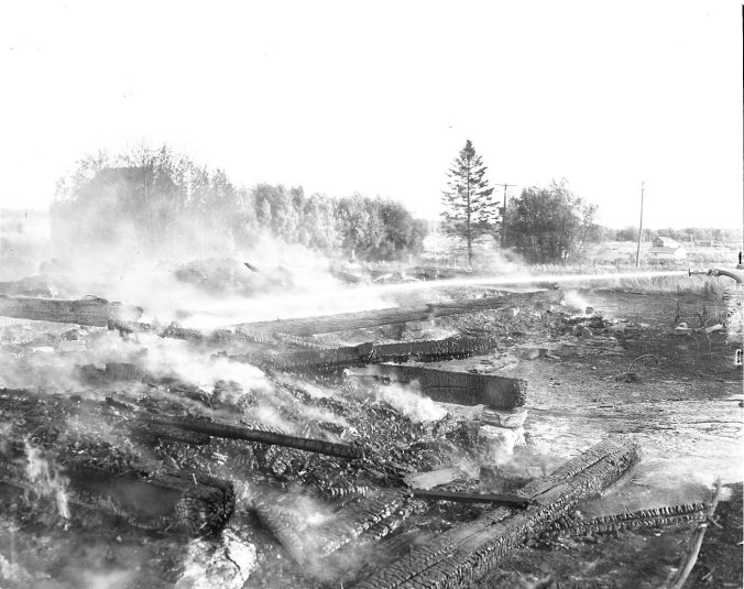 Boys playing with fire crackers is believed to have been the cause of a fire which completely destroyed the near-century-old Roman Catholic Church at Port Severn Friday evening. Known familiarly as the “Lumbermen’s Church”, the tinder-dry frame building was beyond saving by the time firemen arrived from Waubaushene. The building was to have been marked with an Ontario historical plaque.
