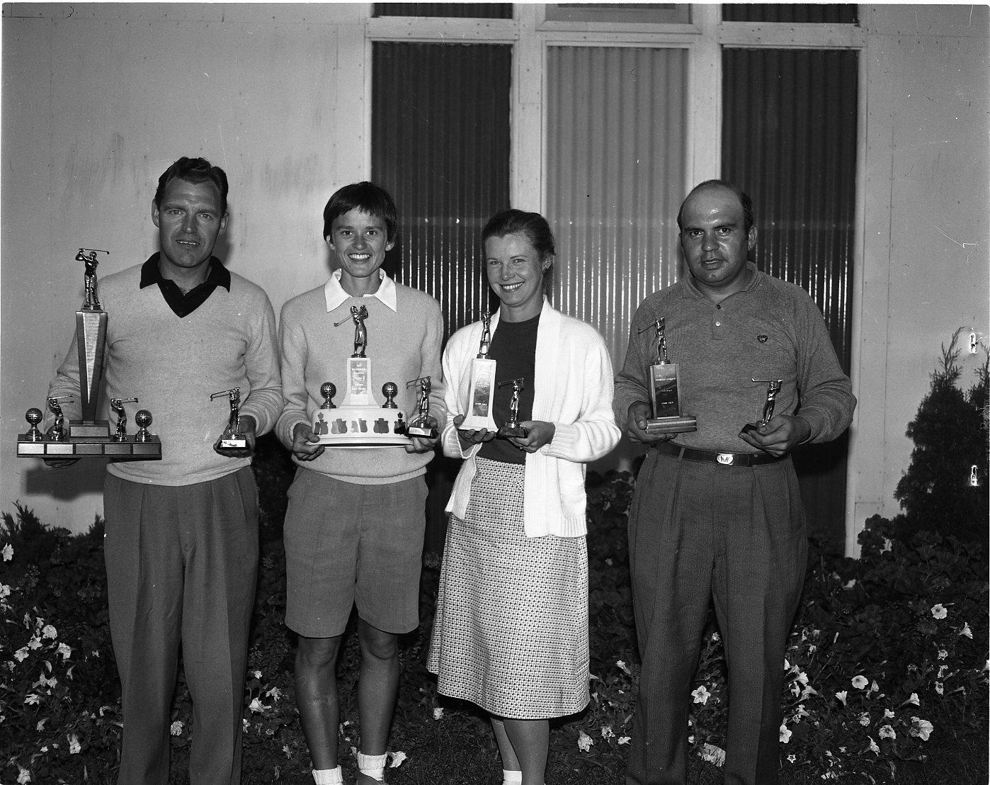 A good season of golf at Midland’s Brooklea course was climaxed at the field day held Sunday. Winners were, left to right, Bill Howard and June Hansford, for low gross scores, and Mrs. Bill Howard and Howard Markham who placed first in the net division.