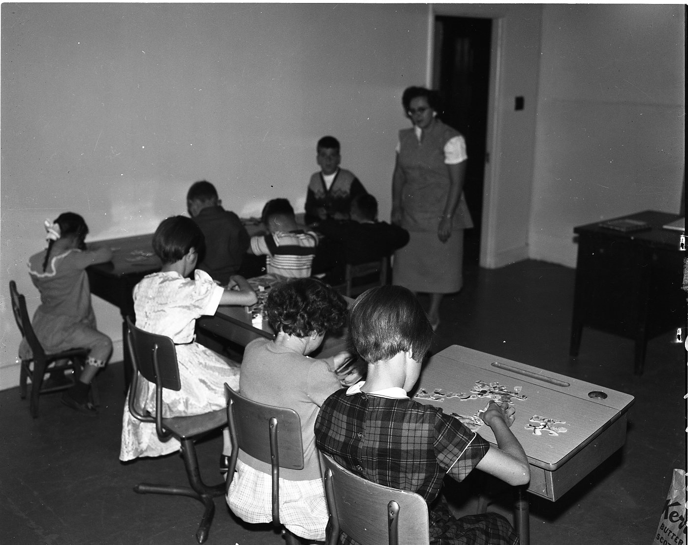Midland’s first class for retarded children got underway this week. Under the sponsorship of the Huronia Retarded Children’s Association, the classes are held in Regent School with eight pupils attending in the morning and seven in the afternoon. Teacher is Mrs. Helen Lapensee.