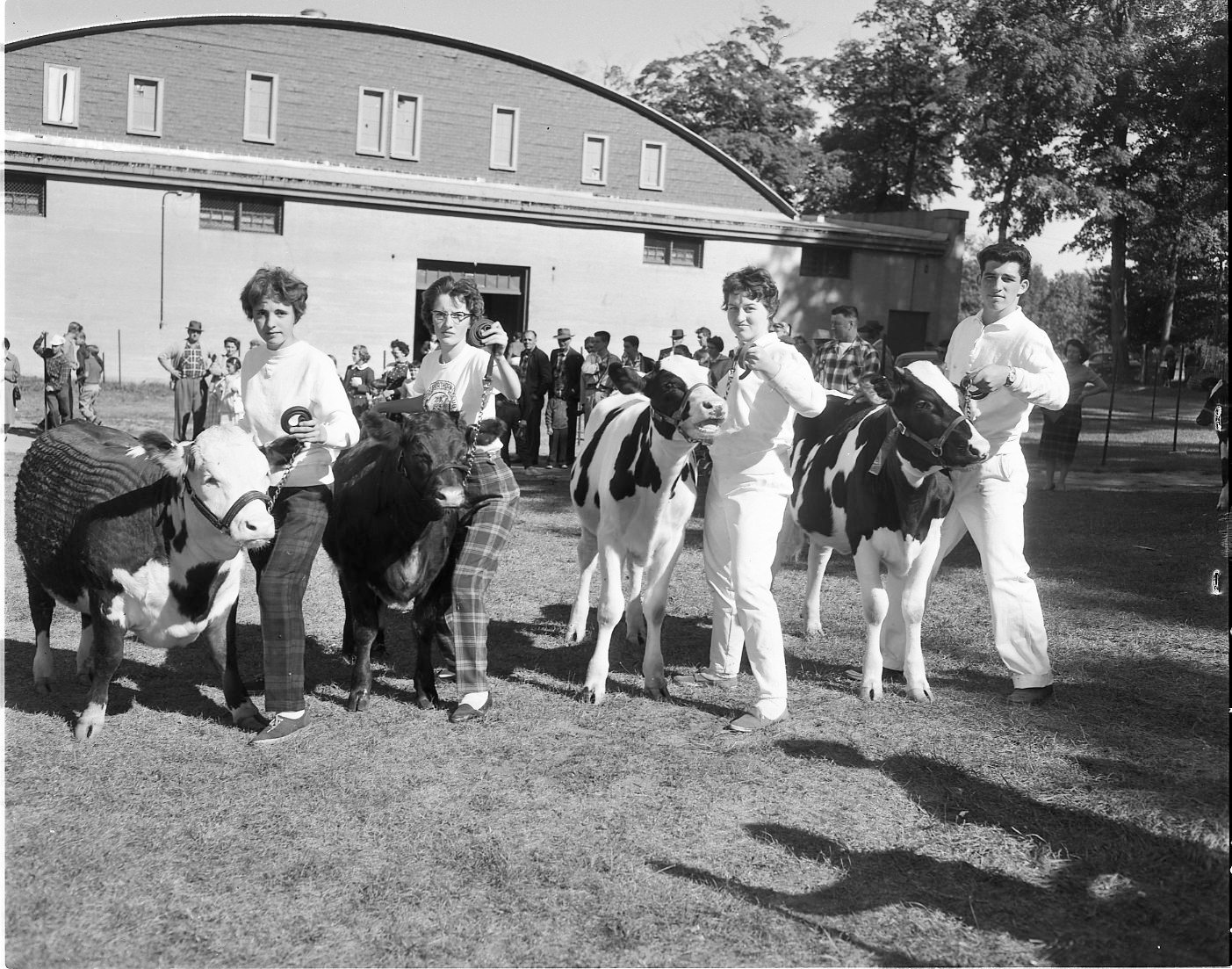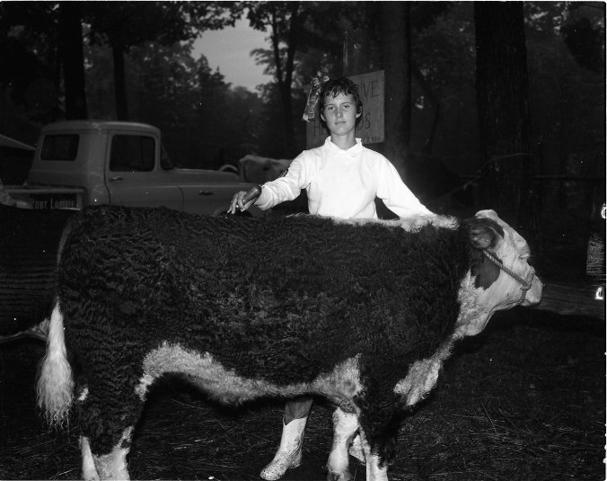 There was no need for the usual bucket of water as Linda Vancise, pretty Stayner farm girl, prettied up her beefy friend for the show ring at Midland on Saturday afternoon. Biggest problem for Linda and others attending was to keep reasonably dry in the heavy showers that began to fall shortly after noon and lasted until after midnight.