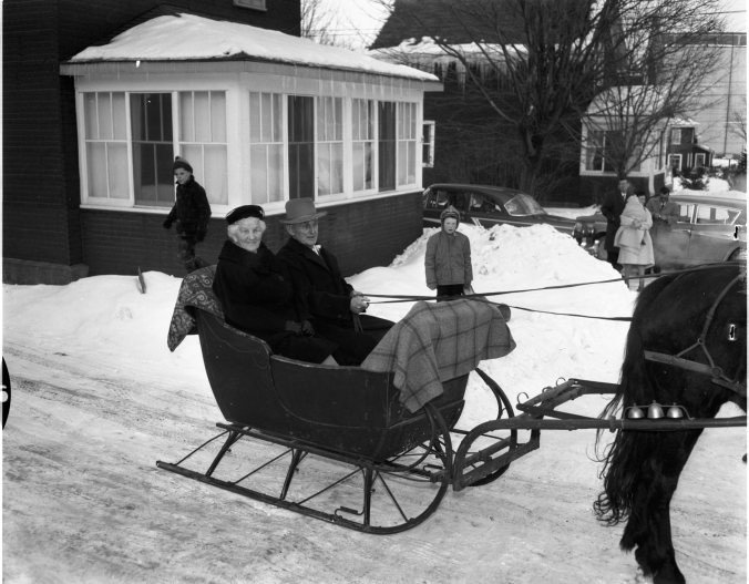 Monday evening, Charles Hanes and his wife, Mary, climbed into a horse-drawn cutter, just as they did 60 years ago when they set out to be married. Monday the weather was milder than on that day when they drove from Sturgeon Bay to Elmvale to be wed by Rev. A. Bedford. This time the drive took them from their home on Midland’s Quebec Street to the Georgian Hotel where there was a dinner for the family and a few of their brothers and sisters.