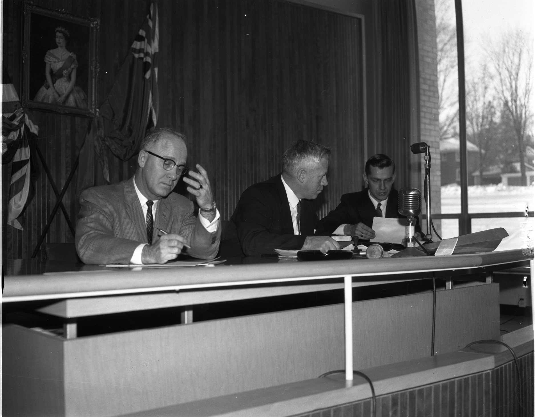 At the inaugural meeting of Penetang council Monday night, Mayor Jerome Gignac made several suggestions for council action in 1961. With the chairman of the public school board sitting in the audience, Mayor Gignac dropped a bombshell when he said, “I am voicing a strong protest that the school board has forced duplication of Grades 9 and 10 on public school ratepayers. I was against it when it started and I am still against it” He was referring to the fact classes for Grades 9 and 10 students have been set up in Penetang Public School. “The board is going to ask us to debenture $420,000 for a new school. I can’t help but sympathize with the Mayor of Richmond Hill who today, recommended his council go to jail rather than collect money for school purposes.” Mayor Gignac said. He mentioned this would, be one way of bringing to the attention of provincial authorities the heavy burden which education costs are placing on the municipal tax payer.