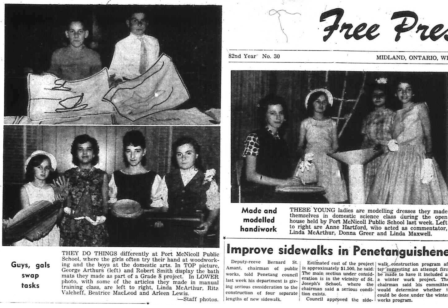 When former Huronia Museum curator Jamie Hunter acquired the Midland Free Press negative collection containing over 75,000 images, he thought we had them all, but as we process and identify them it has become obvious that we only have about half of the photos actually used in the paper each week. Many were submitted by rural correspondents such as Cyril Martin from Coldwater who would have kept his originals. The photos taken from the Penetang office have been lost except for a few hundred. Many photos were submitted by citizens who were on site when events occurred. The negatives from this week in 1961 have also disappeared; there is not one original photo in the collection this week so we have gone to the “copy and paste” option.