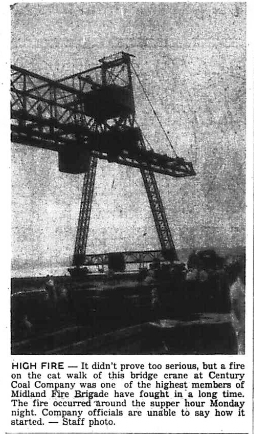 Chas. Day, company official, said there was very little coal in the sheds, since stocks at this time of year are allowed to run low. Greatest loss in contents was a pair of loader conveyers, and a large quantity of dry lumber stored in one shed for later use in box-making.