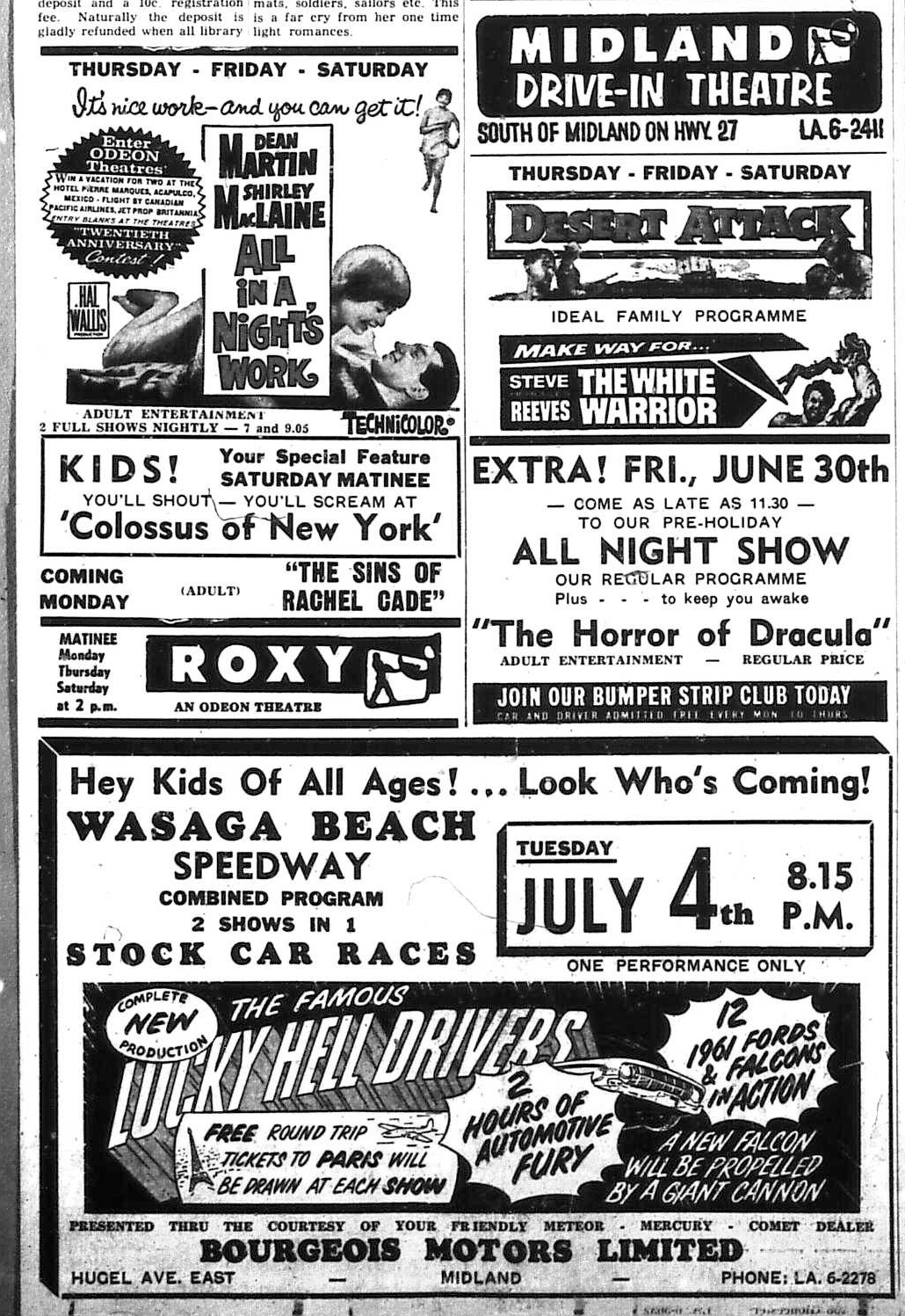 Proud bunch of youngsters in this picture are the Foxes, champs of the Pony League division in Midland’s Little League Baseball. Left to right are; front row, Paul LePage, Mark Wilcox, Jim Holden (Captain), Bruce Armstrong, Jim Courtemanche; back row, Ted Walker, Jim Caston, Raymond Leeking, Dave Wilson, Bill Jones.