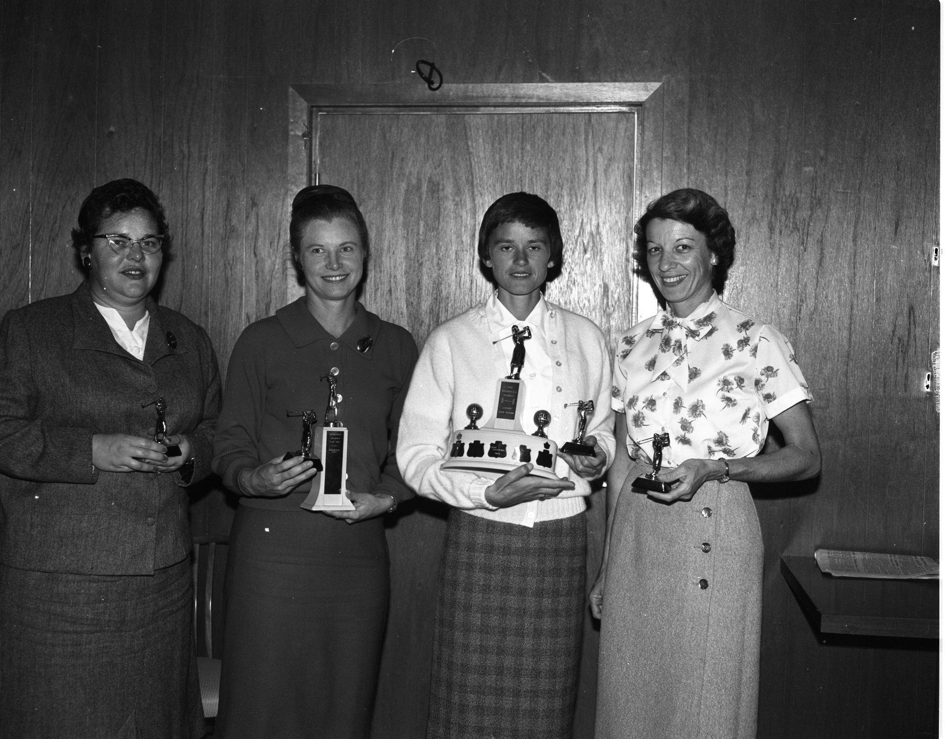 Brooklea Golf and Country Club held its annual field day recently and some of the main winners are seen above. Winners in the ladies’ section were Mrs. Herman Livingston, low gross 2nd flight, Mrs. Bill Howard, low net 1st flight, June Hansford, low gross late flight, and Annette DesRoches, low net 2nd flight.