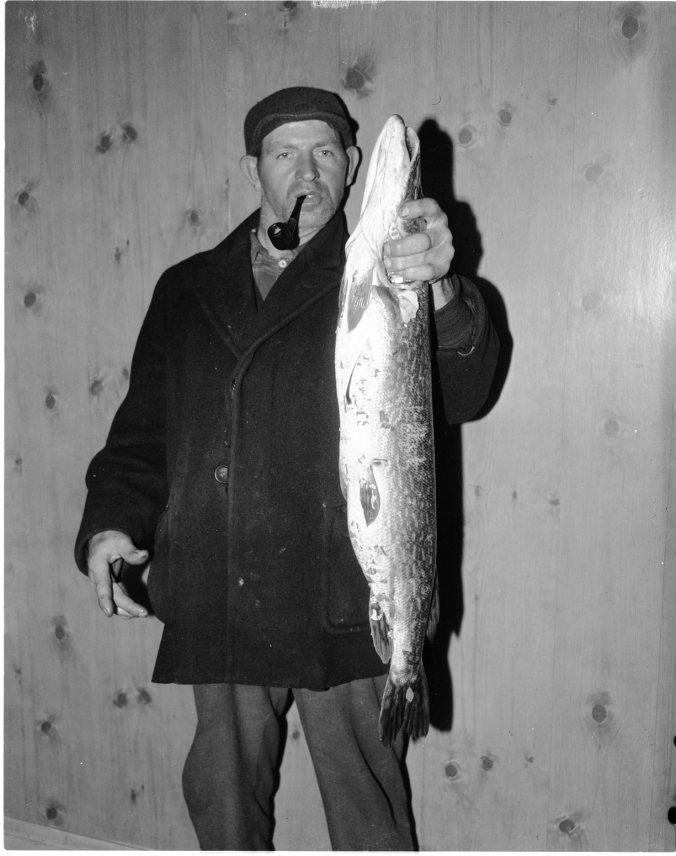 Francis Somers is proud of the big Northern Pike he caught Monday night off the CSL elevator in Midland harbor. Measuring 35 inches long, it weighed 12 pounds. Francis used a small chub to catch his finny prize.