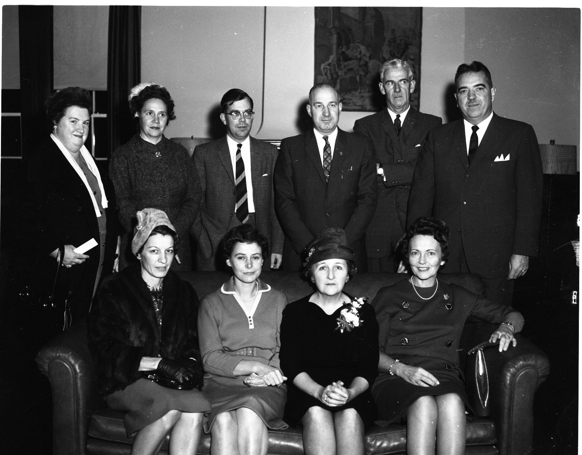 Officials of the Midland District Unit of the Canadian Cancer Society were highly pleased with the turnout for their annual meeting in the YMCA Thursday night. Unit officials and principal guests are seen above. They are, left to right, front row — Miss Annette DesRoches, Mrs. (Dr.) Peter Brasher, Mrs. W. L. Attridge and Dr. Vera Peters, senior radio therapist, Princess Margaret Hospital, Toronto, the principal speaker; second row — Miss Rita Dubeau, Miss Margaret Wilson, Dr. Peter Brasher, N. R. Shill, Harold Boyd and Maurice Grimes, Toronto, executive director for the Ontario division of the Canadian Society.