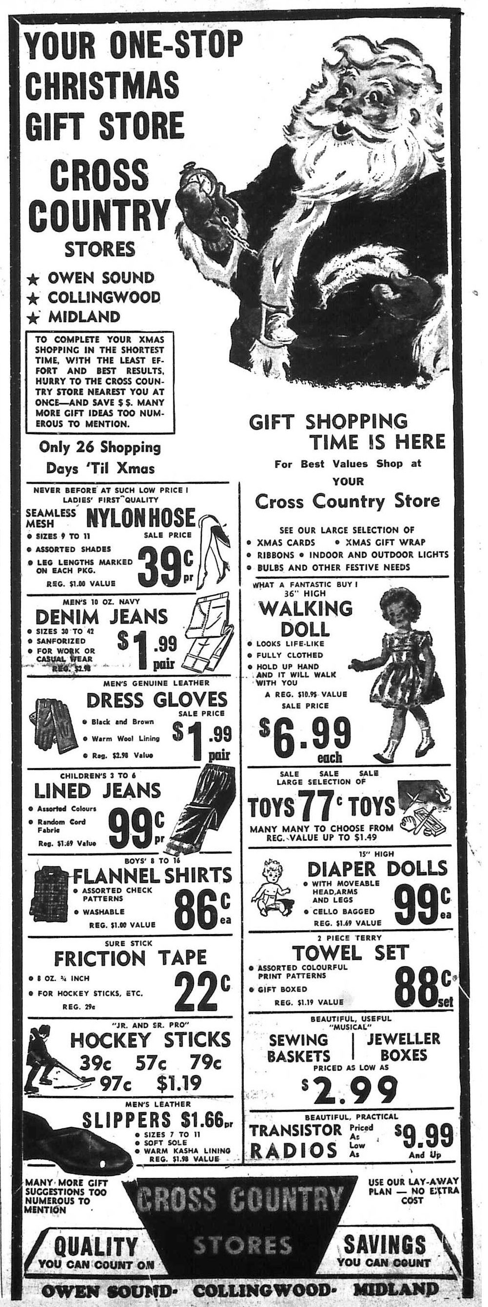 Several Midlanders were involved in the $300,000 fire which swept through a Collingwood business block Monday night. One of the stores destroyed was Mostyn’s Men’s Wear, one of several now operated by Myer Mostyn. Driven from one of the apartments above the four business establishments involved were Mr. and Mrs. James Wood and sons, James, 13, and Murray, 4. The Wood family lived on Yonge Street, Midland, until they moved to Collingwood earlier this year. “We had just nicely got going there and all our books and papers went up with the stock.” said Mr. Mostyn. He said it would probably be some time before the buildings were restored and he was uncertain as to whether or not he would establish a shop in Collingwood.