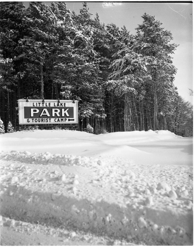 There were few patrons for Midland’s popular Little Lake Park following Monday night’s wild snow storm. And little chance of them getting into the cabins and cottages even if there had been any.