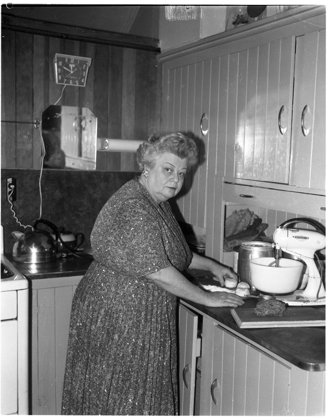 Mrs. Agnes Evans, 43 Fox Street Penetanguishene, is in the dough in more ways than one. Her recipe, “Mother Cakes”, won her a $10 third prize in the County Herald International cook-book contest.