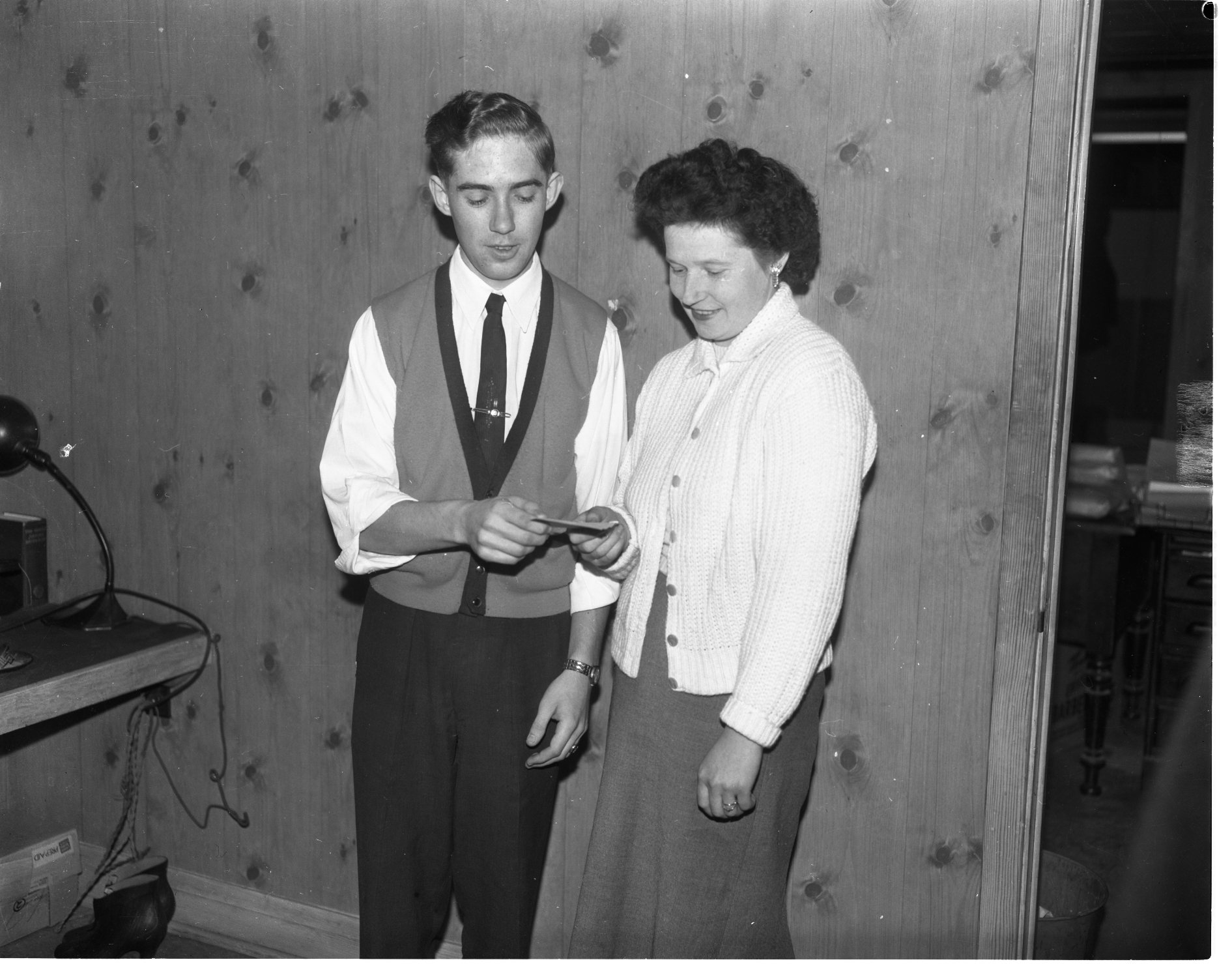 The vocal section of the Y’s Men’s music festival began Tuesday in the United Church hall with Dr. Roy Fenwick paring down the mammoth entries of the Grade 3 girls and boys. The 26 girls entered were topped by Christine Brodeur of St. John’s School, Waubaushene with 85, Barbara Smith with 83, second place and Marilyn Weeks and Mary Ann Tully with 82 were tied for third.