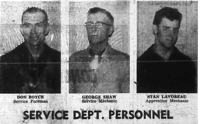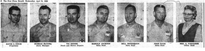 Canadian Tire staff; David J. Finch proprietor, Murray McComb store manager and Mrs. G. Faragher office staff.