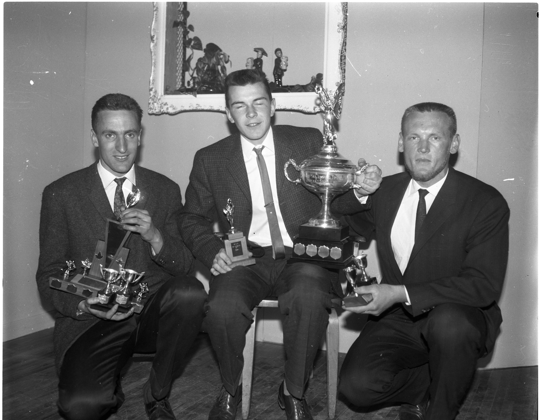 More trophy winners. Young skiers pictured are Kirk WeIdon, Peter Benjamin and Steve Bell.