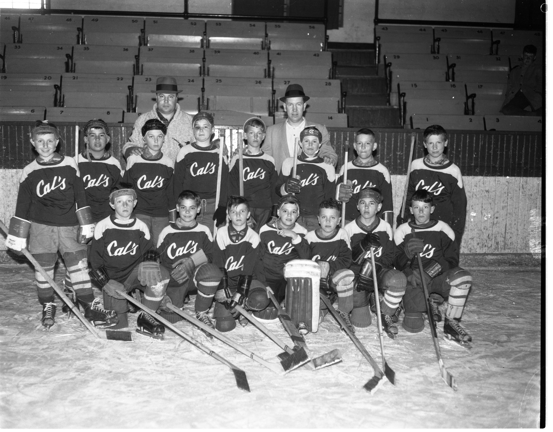 Midland will have two teams in the Little NHL Ontario finals at Cobourg this weekend. Seen above is the junior “A” team. Left to right are, kneeling, Brian Phillips, Bill Deschamp, Jim Holden, Dale Simpson, Ted Edgar, Mike Dragoman, Stephen Stanway: standing: John McLaughlin, Wayne King, Doug Cable, Gary Valcheff, Larry Sauve, Danny Willette, Doug Hamelin and Mike Laurin, team captain. At rear is Henry Valcheff, manager, and coach Dennis Anderson.