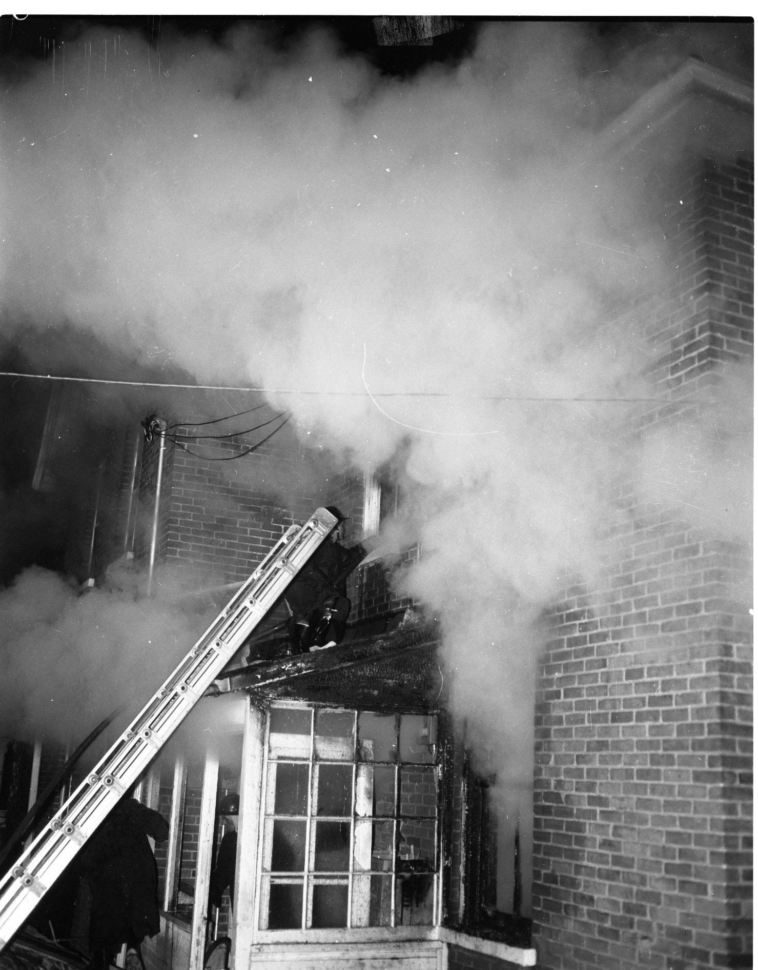 Midland firemen spent several hours fighting the worst fire in town in several months Thursday night and early Friday morning. Several members of the brigade are seen above at the height of the fire which destroyed the building owned by Mr. and Mrs. George Haskill at Bay and Sixth Streets.