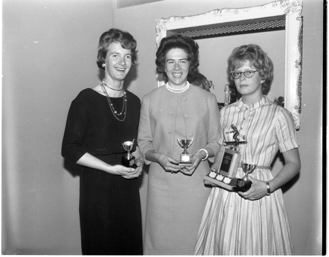 Top girls at Midland Ski Club this past season were, left to right, Fran Brodeur, Lynn McAllen and Jane Edwards. They were presented with trophies won in downhill and slalom events in club competitions during the busy season just ended.