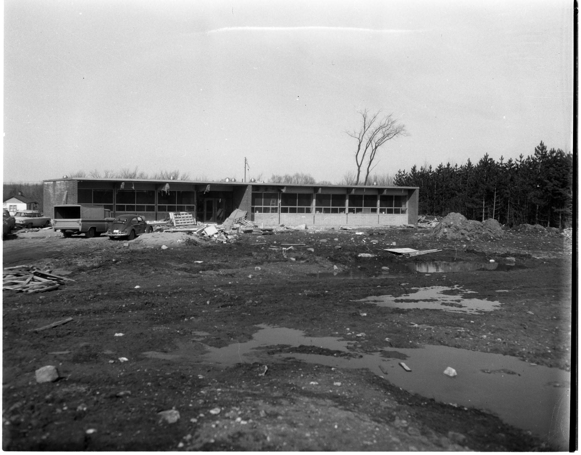 Public school pupils at Victoria Harbour will move to a brand new building next September. Still under construction, the new school is in a safe location, well off the highway. Old school, located on busy Highway 12 at the west end of the village, caused both motorists and parents much concern for the safety of the children.