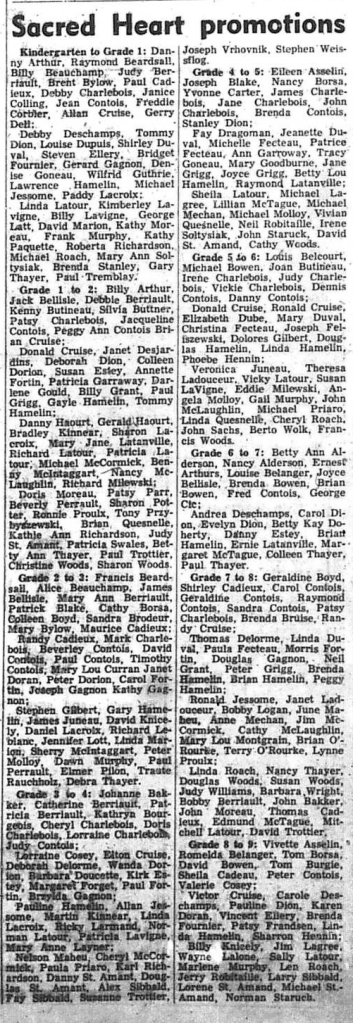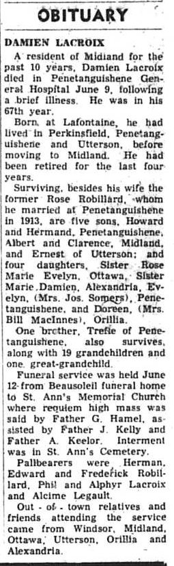 July 2nd, fifty years ago, Mr. and Mrs. Ed Spencer (nee Elizabeth Leduc), Lindsay Street, Midland, were married in Port Severn Roman Catholic Church. On their golden wedding anniversary, the couple who have six children, and 13 grandchildren say that not too many people celebrate a fiftieth anniversary and this was a big event in their lives. Story same page.