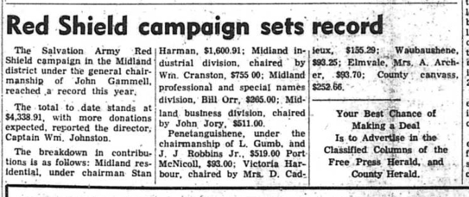 The current tenting fad is anything but popular with Midlander’s whose properties border the Little Lake Park tent area, a Free Press survey indicates. Following the Dominion Day capacity crowds, residents along both Yonge and Mildred Streets, whose back yards adjoin the tent site, complained of overcrowding, according to Tim Nesbitt, a Mildred Street home owner. “Tents are right against our back fences. There is not nearly enough sanitary equipment. The three original buildings were set up as far back as 1938. Tenters have no place to throw their dishwater and as a result disease-carrying hordes of flies are drawn to the area,’’ Mr. Nesbitt explained. Dave Finch, Parks board chairman, said the disagreement was all a “misunderstanding’’. The board “agreed to limit the tenting space and the dispute last weekend occurred because of a misunderstanding between the board and park superintendent, Harold McAllen.” he said. Chairman Finch said in the future no tents would be allowed beyond an old road running parallel to Mildred Street and about 15 feet back of the fence line. Anthony Borysek, a Yonge Street resident proposed a 40 to 50 foot no man’s land between the tenting area and his fence. He thought an 11 o’clock curfew would eliminate “singing and drinking parties”. “I have no serious complaint to make. My children have left toys out in the yard and nothing has been stolen. The tenters are very nice people, Mr. Borsyek stated.