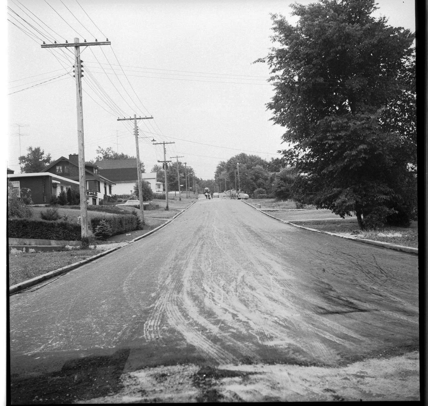 Getting to Midland’s Wireless Hill district is much more pleasant now with the completion of paving on portions of two streets. Motorists will no longer have to dodge pot-holes on three blocks of Johnston Street. A small roller works near the curb on a section of Robert Street. Work was done by Miller-Anderson Paving.