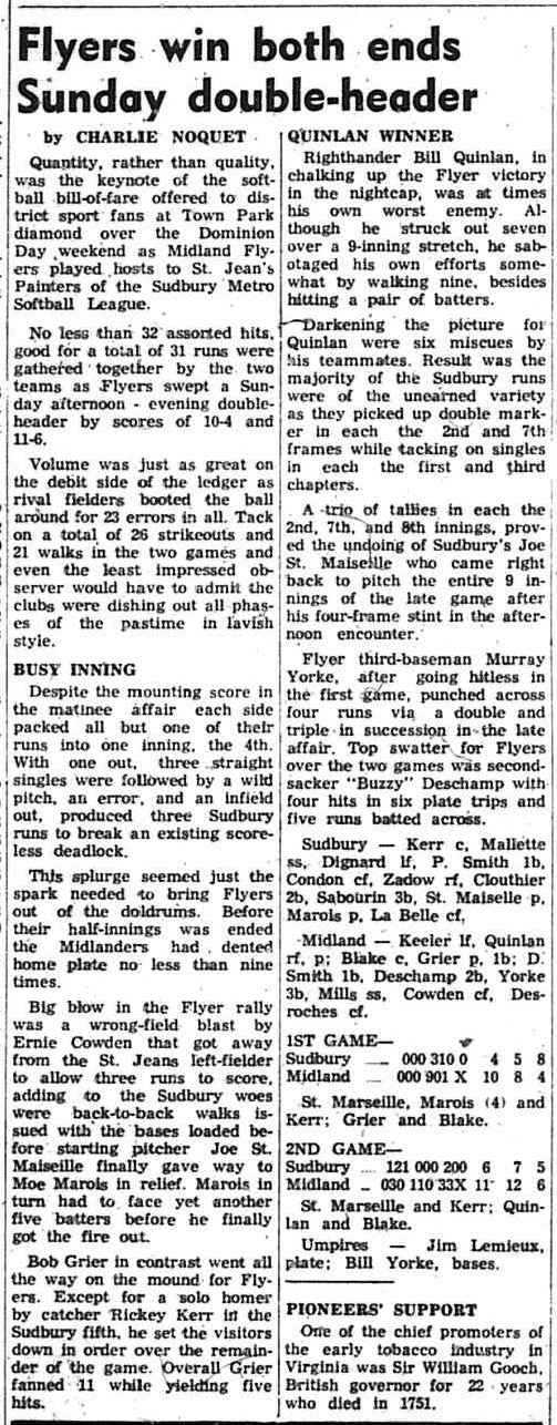 July 2nd, fifty years ago, Mr. and Mrs. Ed Spencer (nee Elizabeth Leduc), Lindsay Street, Midland, were married in Port Severn Roman Catholic Church. On their golden wedding anniversary, the couple who have six children, and 13 grandchildren say that not too many people celebrate a fiftieth anniversary and this was a big event in their lives. Story same page.