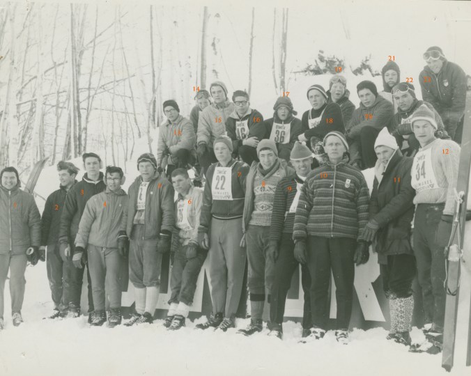 The museum was recently given a number of photographs of the cast of the small theatre company that was co-founded by Joan Hanna, and which performed at St. Mark’s Anglican Church, in Midland. Of the collection, this photo, of the 1954 production of “Take It Easy”, is the only one for which the cast was not identified. Comparing this to the other photos, I have managed to identify: