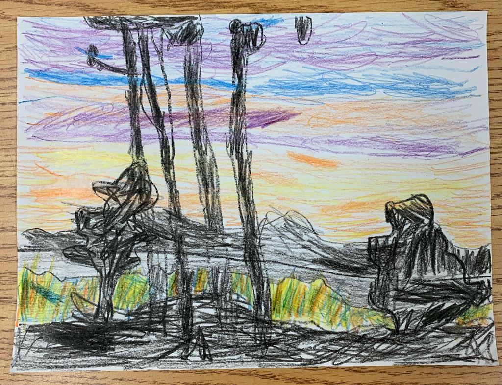 We decided to advertise that fact by having our staff duplicate their favourite Group of Seven painting in our collection using canvasses from the dollar store and crayons. The results were…interesting. What did we learn?
