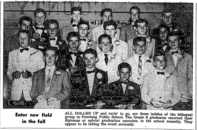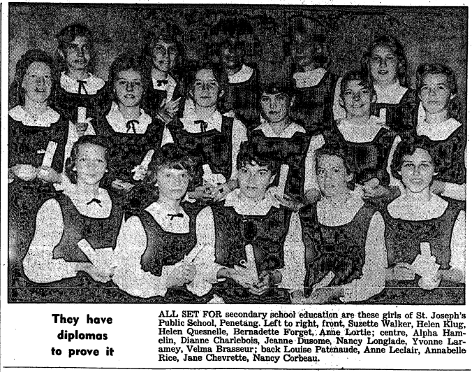 “The support of the parents and students was wonderful,” stated Midland-Penetang District High School” Principal R. C. Gauthier following the graduation exercises last Wednesday night. Estimating that 1,100 people attended the function, Mr. Gauthier stated that previously 300 parents had been a maximum, while this year more than 775 had attended. Mr. Gauthier also had praise for the students. Of the 352 who were to receive honor pins or certificates, only 37 were absent and of these 30 advised the principal that they would be unavoidably absent.