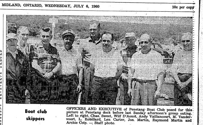 Midland Public School teachers advised music festival chairman J. W. Smith that, by a vote of 23 to 5, they were in favor of a non-competitive festival. * * * Sunday sport was approved at Wasaga Beach by a vote of 121 to 20. Only 25 per cent of the eligible voters cast their ballots. * * * University of Western Ontario President Dr. E. G. Hall predicted that the university’s summer school of archaeology would have its locale in this area for some years to come. Dr. Hall was speaking at the official launching of the school at Fort Ste. Marie. * * * A cottage building boom had started all up and down the length and breadth of the North Simcoe peninsula and “Up the Shore”. * * * Rev. A. G. Reynolds accepted a call to the United Church at Elmvale. * * * Penetang council accepted an offer by the Bank of Toronto to purchase $24,000 in debentures to cover the cost of the new water well at the west end of Robert Street. * * * A concentrated search was underway for Melville Wilkie and George Herman Woodcox who had escaped from the Ontario Hospital, Penetang. Both men had been admitted to the institution after being adjudged insane on charges of murder. It was Wilkie’s fifth escape. * * * Canadian warship HMCS “Portage” docked at Midland and held “open house”. * * * Hon. Ray Lawson, Lieutenant Governor of Ontario, was a surprise passenger aboard the M.S. Midland City when it arrived at Penetang from Parry Sound. He had been visiting up the shore.