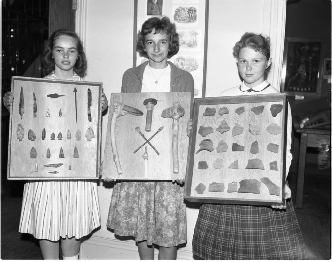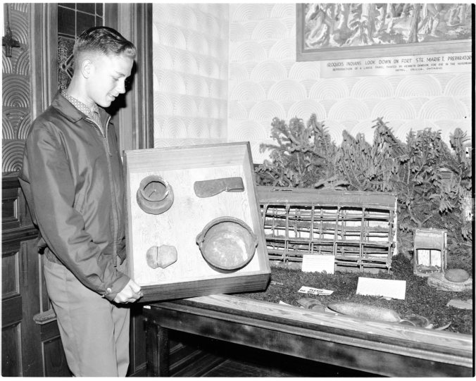 Hundreds of local school children and others from many parts of Ontario have already heralded another banner season for Midland’s Huronia Museum. Keith Craig shows some of the copper, clay and iron articles used for trading purposes by the Indians who inhabited this area some three hundred years ago.
