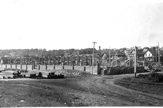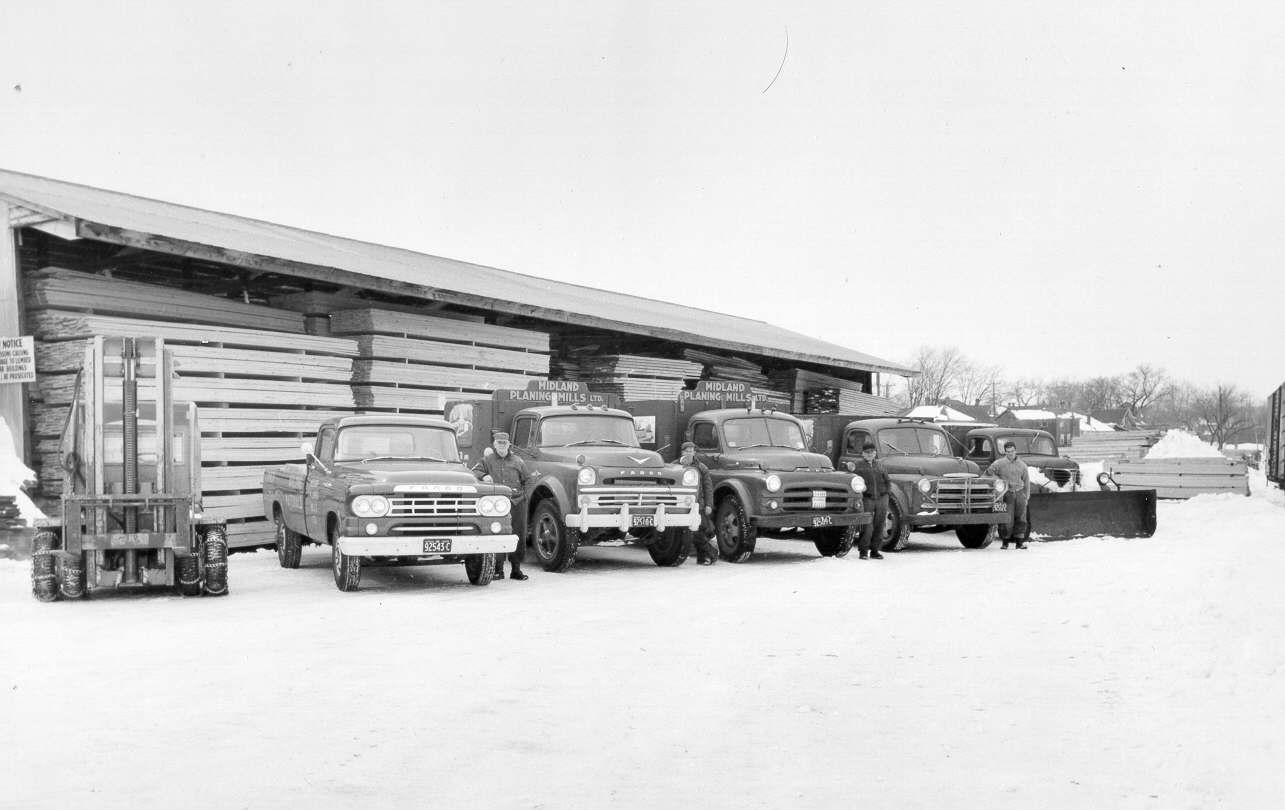 Free Press headline of February 3, 1960. For the second year in a row, the value of building permits issued in Midland exceeded the million-dollar mark in 1959, according to figures released this week by W. F. Turnbull, the building inspector. Included in the $1,472,050 grand total was $659,850 for residential construction, an all-time high in Midland, Mr. Turnbull said. Other figures for last year were $131,000 commercial, $532,700 industrial, and $148,500 government. The latter figure is largely accounted for by the construction of two schools by the Midland Separate Schools Board. June was the best month in 1959, with permits issued having a total of $537,000. September accounted for another quarter million. April had $216,200 and October $172,400. Last year’s total was made more impressive by the fact that no permits at all were listed under the first three months of the year. Helping to swell the total for residential construction were 57 permits, including 25 for September alone. July at 10 and April at 8, were the next best months. Another 36 permits were issued for renovations, etc. Commercial permits included two service stations, a hardware store and a warehouse. The new B. Greening Wire Co. plant accounted for all but $82,700 of the industrial total. By comparison, the total value of permits issued in 1958 was $1,268,760, and in 1957 it was $748,650, just a little better than half the 1959 total.