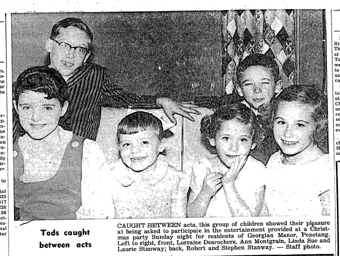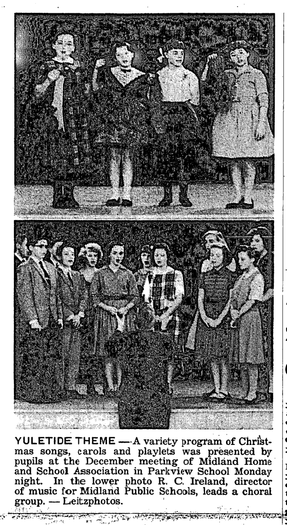 - (A pivotal event in our communities history) A general meeting of parents of retarded children and interested persons has been arranged to discuss the organization of a local association of the Ontario Association for Retarded Children and the setting up of special classes for retarded children of Midland and district. The meeting will be held in the ladies’ parlor of the Midland YMCA at 8 p.m. Jan. 18. Special speaker for the meeting will be A. J. McAlister, director of public relations for the OARC. All organizations, service clubs, lodges, chambers of commerce, Legion branches, Women’s Institutes, Jaycees, church groups, the Ministerial Association, the Medical Society and health nurses have been asked to send representatives to the meeting. Public School Inspector K. J. Ellis has agreed to be acting chairman of this organizational meeting and Mrs. Orville McClung of Wyebridge will be the acting secretary.