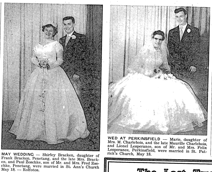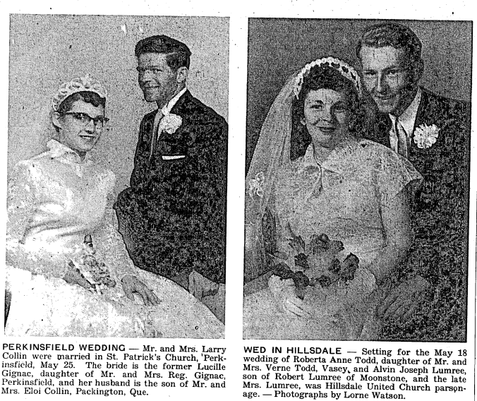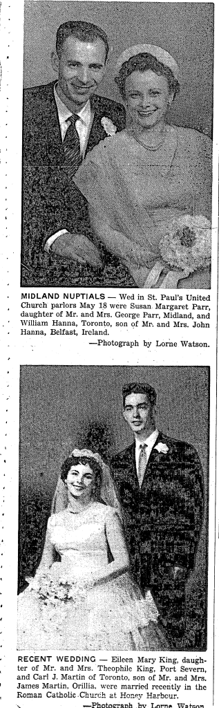 - The marriage of Patricia Anne Jones, youngest daughter of Mr. and Mrs. Earl H. Jones of R.R. 1, Midland, to Ronald Earle Graham, Elmvale, youngest son of Mrs. Cecil Graham of R.R. 1, Elmvale, and the late Mr. Graham, took place June 15 in the Vasey United Church.