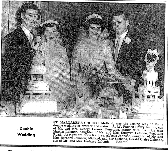 - Forty-two-year-old George LeBlanc of Midland died in Wellesley Hospital, Toronto, Thursday from injuries he received in a 40-foot fall from an apartment house roof last Saturday night. He never regained consciousness. Friends said Mr. LeBlanc elected to sleep on the roof of the Carlton Street building to escape the heat. He apparently rolled over in his sleep and fell to the pavement below, suffering severe head injuries.
