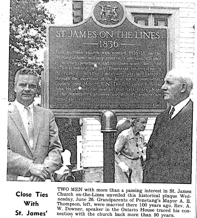 - Ten Years Ago This Week – Some 200 passengers aboard the CPR’s S. S. Assinaboia had an unscheduled stop when the 3,900-ton ship ran aground in shallow water about 250 feet from the dock at Port Arthur. * * * Penetang council had approved a bylaw authorizing the widening of Fox Street and paving the road to a 20-foot width. It was the first paving project in the town in 15 years. * * * Dignitaries from the provincial government, University of Toronto and the Royal Ontario Museum attended the official opening of Huronia Museum in Midland (Huronia House Museum in the former Playfair residence at Edgehill). Prior to the ceremonies, a dinner was held in Huronia Tea Room. * * * Victoria Harbour ratepayers were being asked to vote a second time on a proposal to install a community waterworks. The second vote had been ordered by the Ontario Municipal Board. * * * Francis St. Amand of Waubaushene had celebrated her 104th birthday. She attributed her longevity to hard work and a quiet life. * * * Midland and district veterans, who had purchased property in the VLA sub-division west of Midland, had hit a major snag in their building plans. The big problem was the provision of water. * * * Ontario Provincial Police had “taken over” the town of Penetang. Four OPP officers arrive July 18 and commenced policing the town at 8 p.m. that same day. * * * Construction had started on Midland’s new 207,000-gallon water tower on Wireless Hill. The structure, when completed, was to be 114 feet high.
