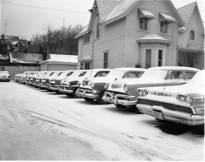 The first snow fall of any account this season hit this area Wednesday, covering the roofs and windows of these cars on Lionel Bourgeois’ car lot. But North Simcoe received only a fraction of the 3 1/2 feet of “the beautiful” dumped on the Buffalo area and to a lesser extent the fall at the Lakehead.