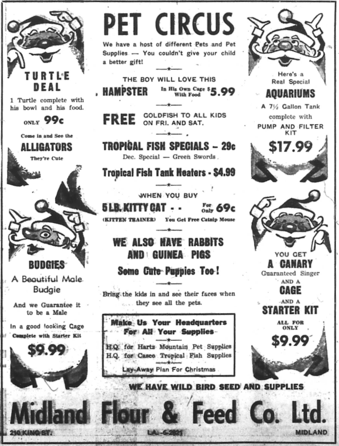 A suggestion that a drainage ditch running through Tiny Township, which empties into an area where Midland obtains its water supply, carries more than just drainage water. This was voiced at Saturday’s meeting of Tiny Township council. Mrs. M. Marchand asked council what steps were being taken to have the ditch cleaned. She said, “You don’t know all that goes on around that ditch. Some people even run their toilets into it. They don’t have septic tanks.” The ditch has its beginning on one of Mrs. Marchand’s farms along the south border of the town of Penetang. It runs from there in a south-easterly direction behind several houses on the west side of Highway 27, crosses the highway, and eventually empties into the swampy area in the Midland Public Utilities watershed area where wells and reservoirs supplying the town’s drinking water are situated.