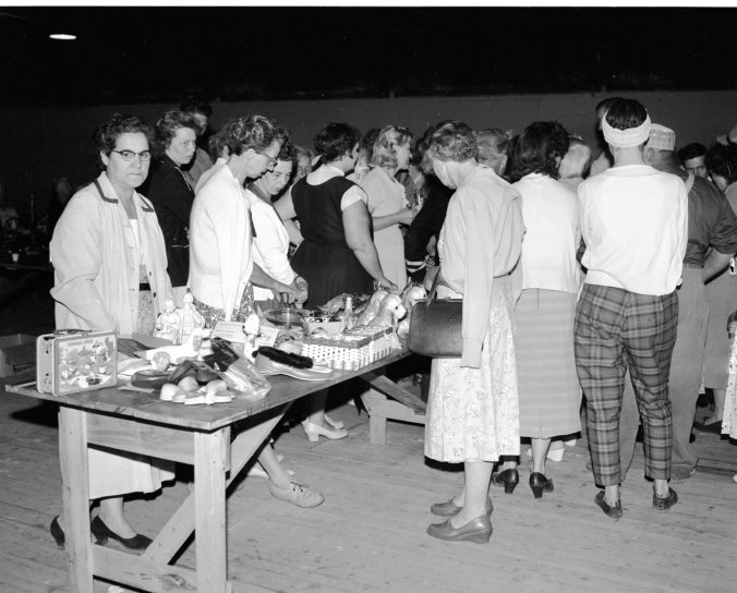 “See anything that looks good?”, was the query these women asked their friends as they arrived at the auction sale staged by St. Mark’s Laymen’s Association at the curling rink in Midland, May 28. They must have found something to interest them, for every article donated to the association by district citizens was sold.