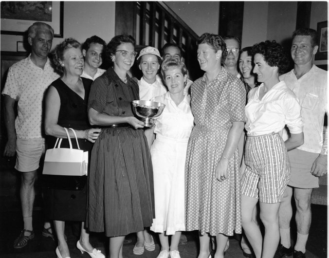 Fellow members of Midland Golf and Country Club turned out Friday night to welcome Mrs. Cecil (Maddy) English after she won the Simcoe County women’s golf title in Barrie that afternoon. It was the ninth time Midland ladies have taken the top county honour since competitions began in 1922.