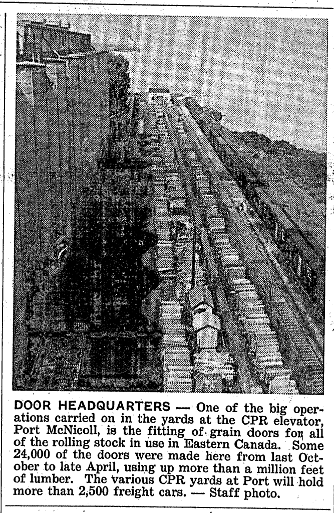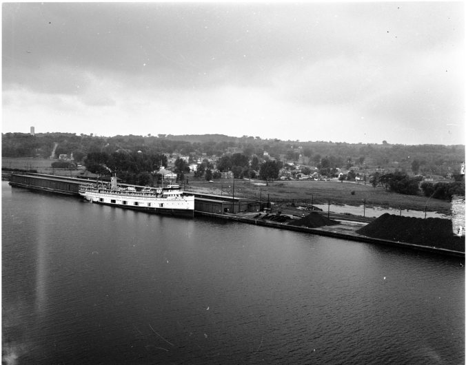 Some breathtaking views can be had from the top of the CPR elevator in Port McNicoll. This is how Port McNicoll looks from more than 100 feet up, with the CPR steamship Assiniboia nestling in the foreground, in front of the freight sheds.