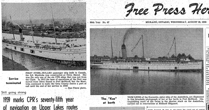 - Ability to buy woollen goods at better prices was proved to be one of Canada’s big drawing cards for American tourists as the Western States docked in Midland Labor Day morning with 350 passengers from Detroit. (This was a huge drawing card for the American tour boats, woollen goods and British china.) An immediate beeline was made for the stores carrying blankets, woollen sweaters, woollen coats. When it was found that these were all closed due to the America-wide holiday, the passengers stormed the newspaper office in an endeavour to have the press use its influence to open the shop doors.