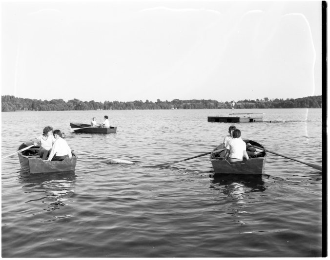 There were some near misses, and not a little confusion at times, as these members of the 1st and 2nd Midland Girl Guides’ companies tried for their bosuns’ badges at Little Lake recently.