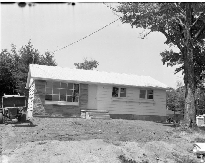 Model home on Noreene Street built by Beaver Lumber and this photo was used in an advertisement announcing an open house Saturday and Sunday, July 7 & 8. Mortgage as low as $56 per month. [This house burnt around 2018 but was rebuilt.]