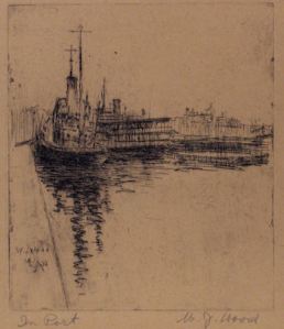 “Years ago I met Bill Wood, who worked in the shipyards at Midland. He had always wanted to be an artist, and he had managed to put in a few months’ training in Toronto in the winter-time when he was a Great Lakes sailor. Then he got married and raised a family. When he took up etching, he made his own press and prints. His efforts at etching and painting were all made after the day’s work or at week-ends.