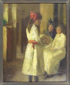 During World War I, Wood served in the Canadian Army in England and on the Continent, returning to Canada in 1919.  While stationed in England he took art classes at the YMCA.  At this time he may also have seen and been influenced by the work of Walter Sickert. Wood most certainly attended exhibits of the Royal Academy.