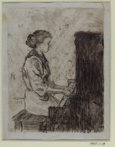 2. It should be noted that W. J. Woods’ prints were not etchings, but drypoints. Drypoints are but one of the Intaglio methods of printmaking that includes etching (use of acid), aquatint, mezzotint, and engraving. A drypoint is obtained by scratching and image into a metal plate whereas an etching is obtained by coating a metal plate with a ground (asphaltum) then drawing through the ground to bare the metal, which is then etched into the plate with an acid (nitric). W. J. Woods should be described as a “Painter & Printmaker”.