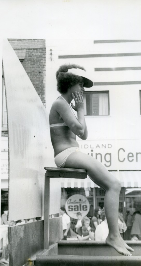 Photo #12. I don’t have a date or year, but the person behind the CKMP mic is Bob (Chopper) Hendrickson. He was a local hockey player for such teams as the intermdiate Midland Flyers during the 1960s, as well as being a pretty-fair southpaw pitcher with the town’s baseball Indians. His brother, Jack, was even better. In fact, many who saw him play, consider Jack to be one of the best all-round athletes Midland ever produced. A defenceman, Jake, as he was called, had a long career in pro hockey, including a few brief stints guarding the blue line for the NHL’s Detroit Red Wings. As for Bob, he later pursued his passion for country and western music and actually had some of his songs recorded. There’s a photo and/or story about Chopper somewhere in the Free Press archives, from maybe the late ’60s or early ’70s, which highlights his success.