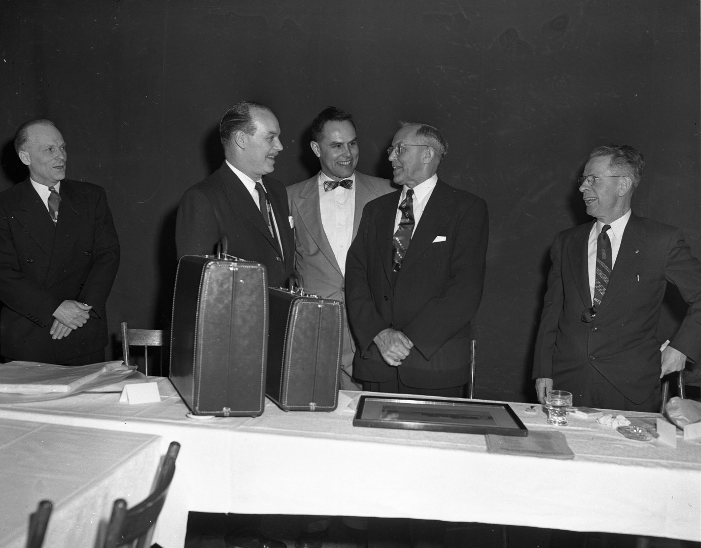 - Leacock Dinner honours Robertson Davies, author and playwright, with the 1955 Leacock Medal for Humour.